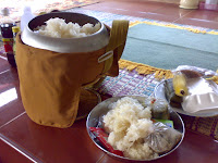 เพิ่งจะเคยเห็นตักบาตรข้าวเหนียว นั่งขำอยู่คนเดียวตอนที่พระท่านบอกให้ว่าตาม